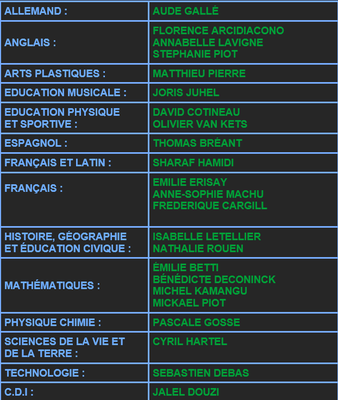 Voici les professeurs du collège pour l'année scolaire 2025.2026