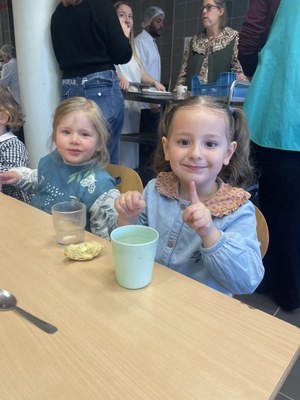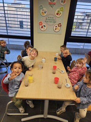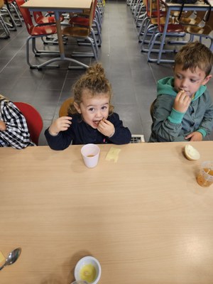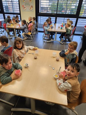 Mardi 7 octobre, les 3 classes de maternelle sont venues en cantine pour partager un petit déjeuner.