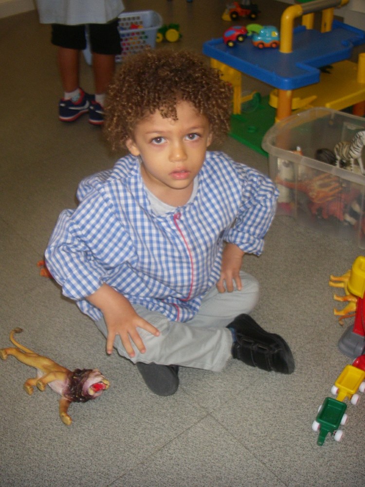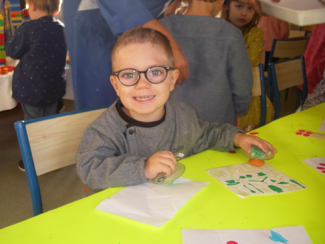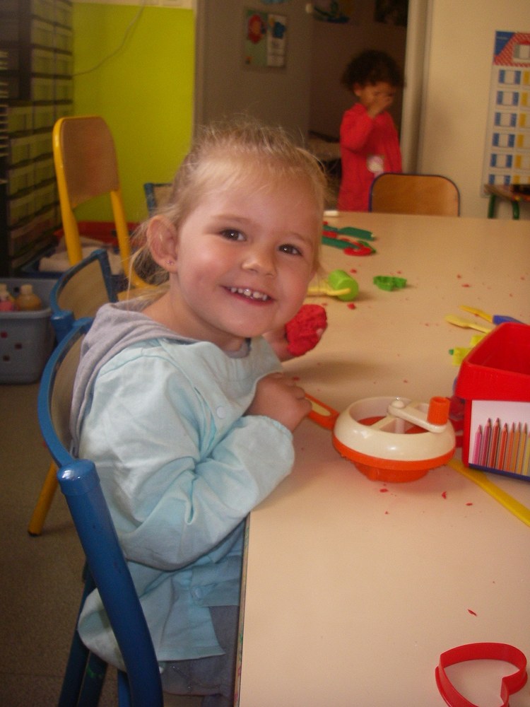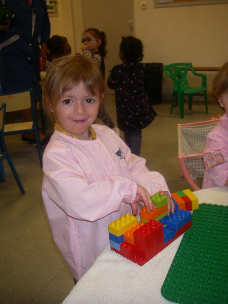Pour cela, nous jouons aux Legos, à la pâte à modeler, au coin poupées...