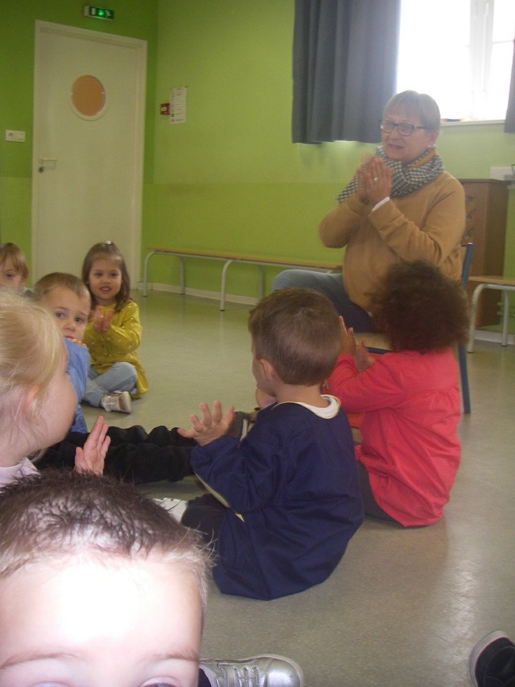 Régulièrement, la maîtresse lit des histoires et nous l'imitons ensuite.