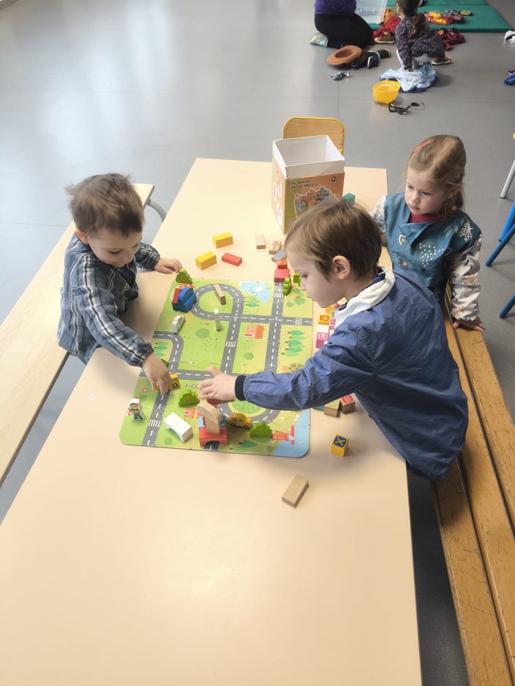 Jeux de vocabulaire, de construction, déguisements, table à semoule…