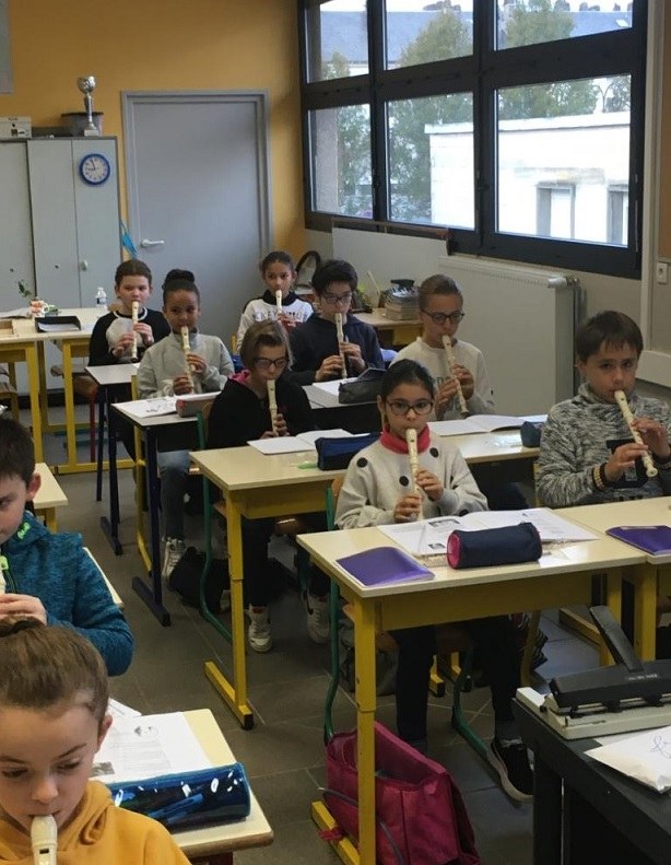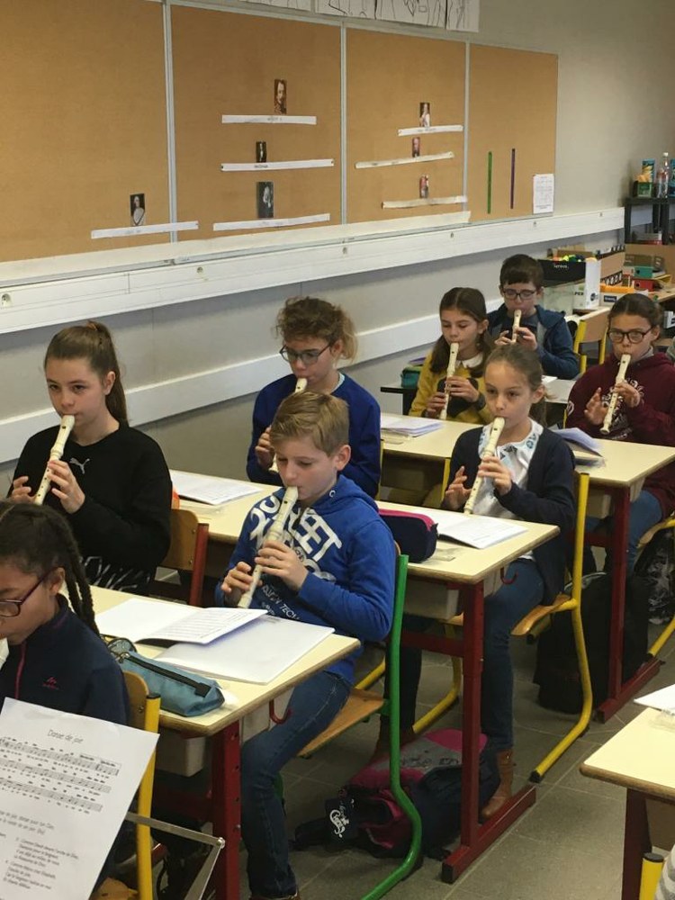 Séance de flûte le matin avec les CM2 de monsieur Macé école Jeanne d'Arc à Gisors