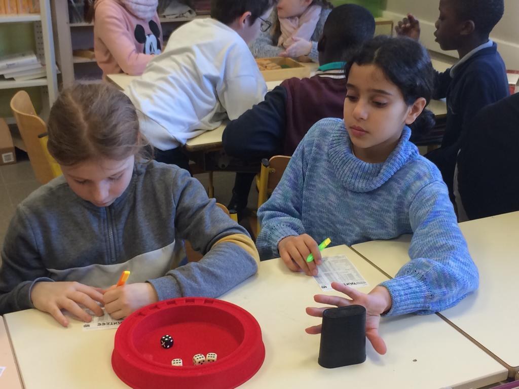 Les élèves ont travaillé la notion de hasard et le calcul mental par le biais de nombreux jeux animés par l'association VENI VIDI LUDI.