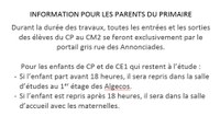 Durant la durée des travaux, toutes les entrées et les sorties des élèves du CP au CM2