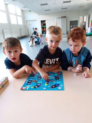 Les élèves de maternelle qui restent à la garderie le soir réalisent de nombreuses activités : Peinture, jeux de société, de construction..